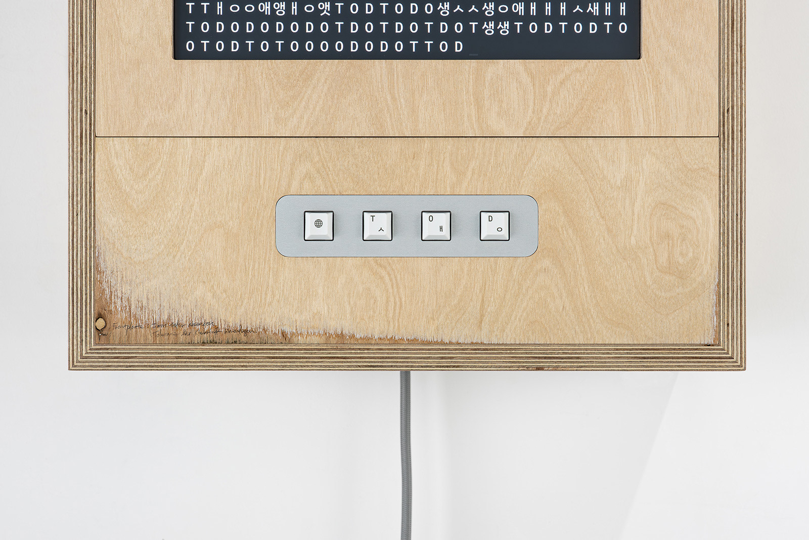 PUNKTum is a lensless photographic apparatus that does not record light, but consequence. On a standard Korean keyboard, the keys for the Korean ‘생’ (ㅅㅐㅇ, life) and the German ‘TOD’ (death) occupy the same coordinates. Whether one intends life or encounters death, each strike is irreversibly inscribed.